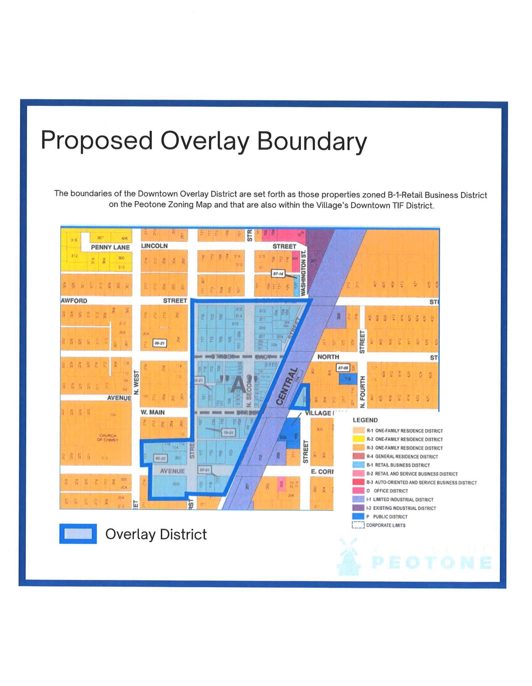 of Peotone. The boundaries of the Downtown Overlay District are proposed as those
